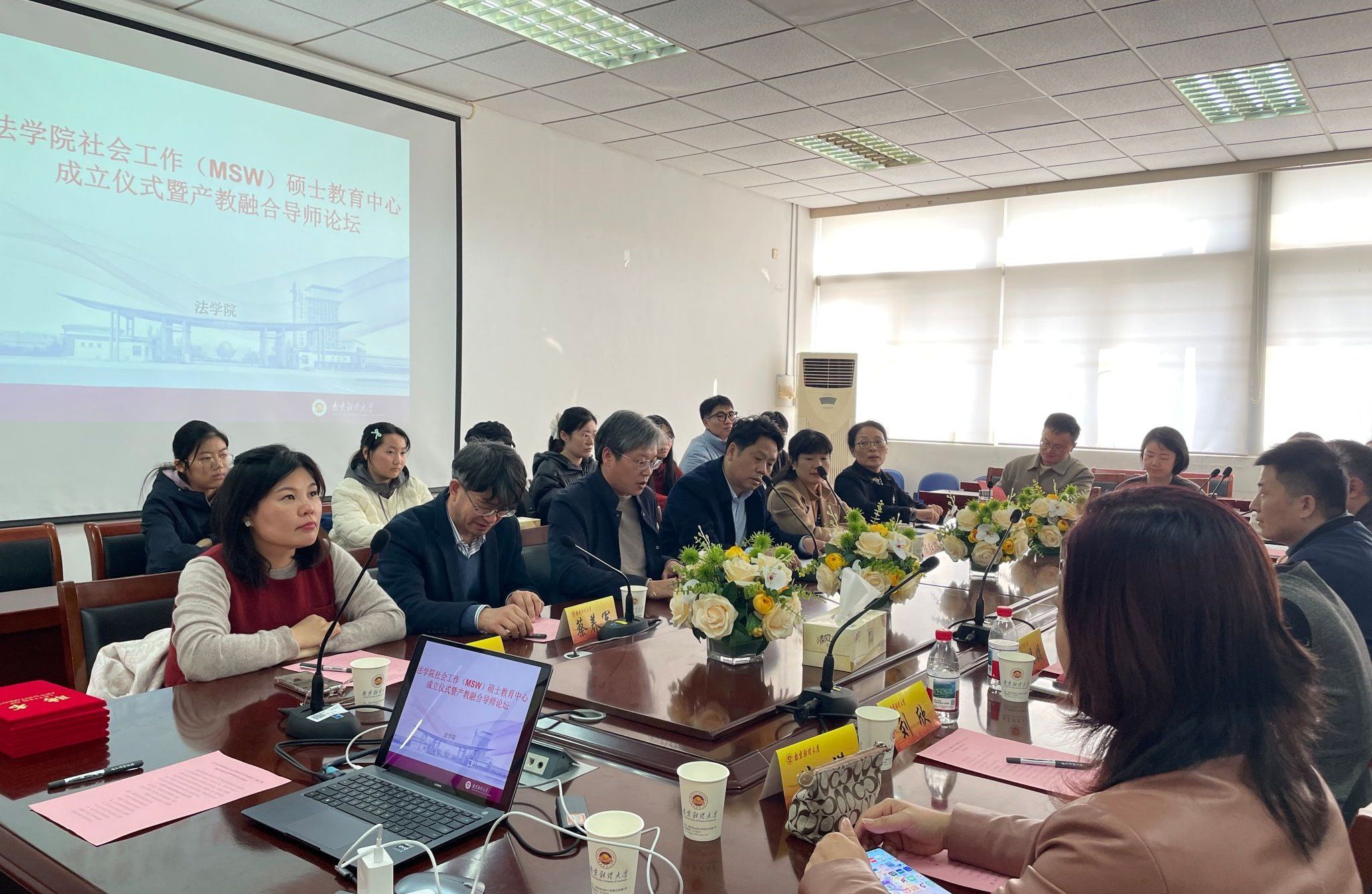 12月10日下午,草莓视频 社会工作硕士(MSW)教育中心成立仪式暨产教融合导师论坛在仙林校区德正楼404会议室隆重举行。学院党委书记黄建国、院长胡宜奎、副院长蔡养军、副院长陈红梅等学院领导出席会议。南京市栖霞区启蒙社区发展中心理事长岳耀蒙、南京同心未成年人保护和服务中心总干事高娟娟、南京市救助站高级社会工作师刘欣、南京市益民社会服务中心理事长姜媛媛以及南京市溧水区英博社会工作服务中心理事长王合涛等行业专家受邀出席。草莓视频 社会工作系全体教师、研究生及部分本科生代表参加了本次活动。成立仪式由黄建国书记主持。