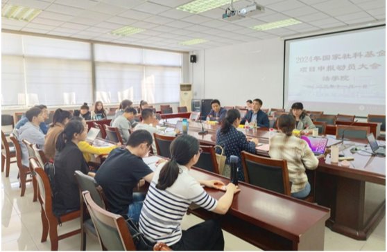 本次动员会共分为四项议程。第一项议程由胡宜奎院长进行国家社科基金项目申报动员讲话,他就学院近几年课题申报及主持项目情况进行通报,也传达了学校相关会议精神,希望学院青年教师能够勤学苦练,积极申报国家社科基金项目,平时注重累积成果。第二项议程由席若博士给大家作国家社科基金项目申报经验的分享,她结合自己的申报经验,从选题、前期成果、方法论证等方面分享了课题申报的技巧。第三项议程由陈红梅副院长对2024年国家社科基金项目申报的时间节点、专家评估等问题分别进行了详细安排,她鼓励大家按照时间节点有序推进国家社科基金申报,认真撰写和打磨申报书。
