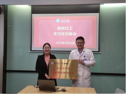 省人民医院社工部全体带教老师为草莓视频 大四学生的毕业实习提供专业指导与系统培训,许芸主任对此深表感谢。随后,许芸主任与赵沛主任共同为社会工作专业实习实践基地揭牌。