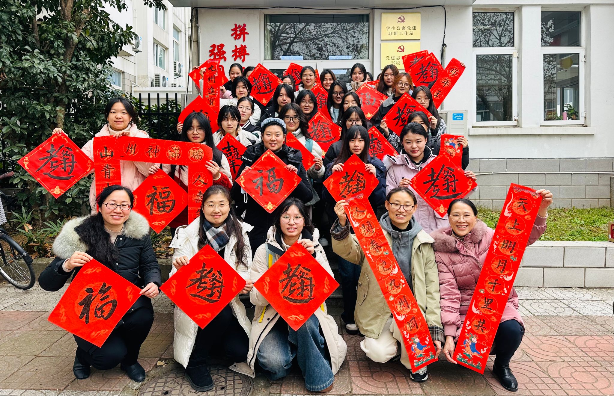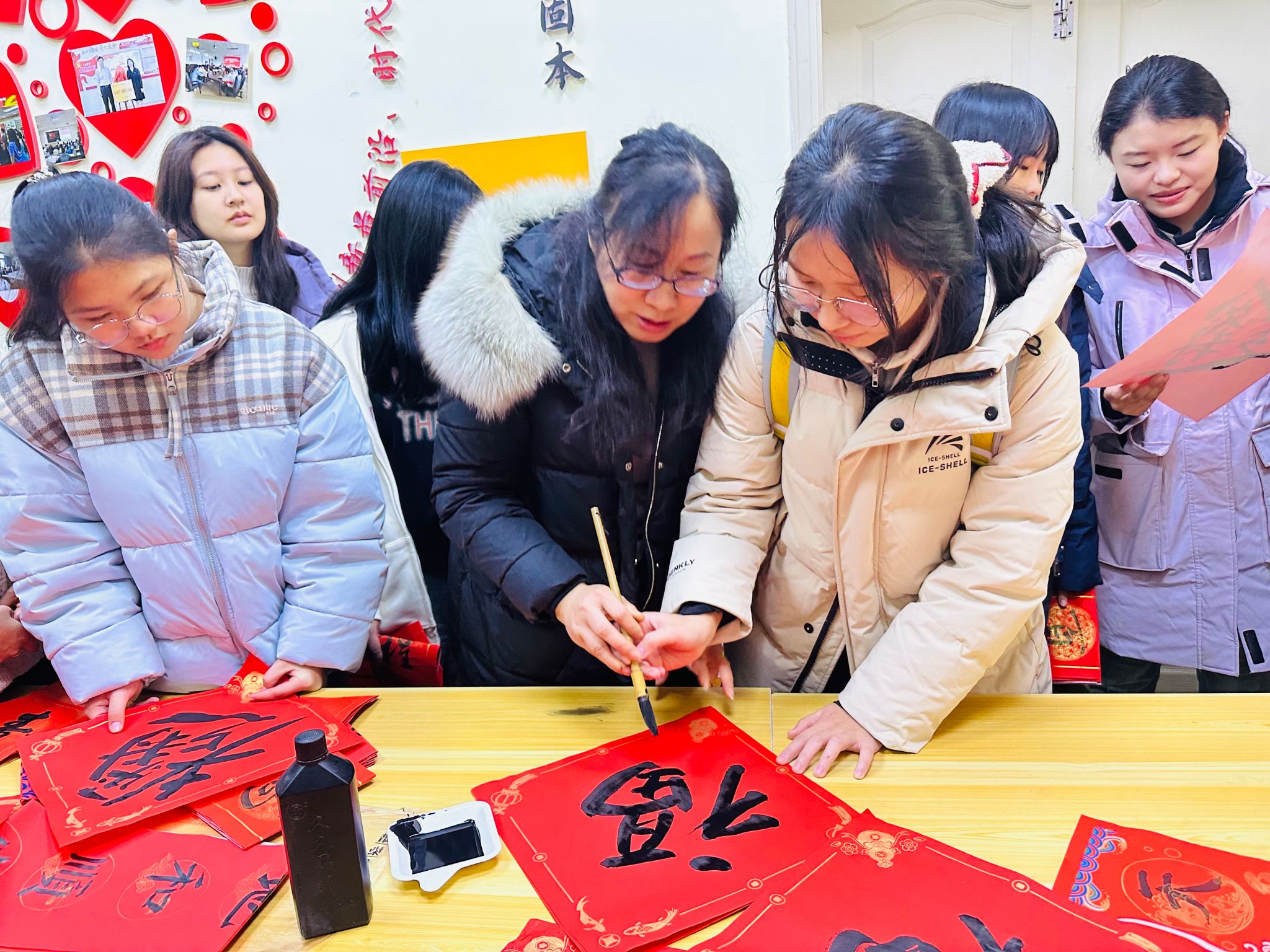 活动最后,老师们将蕴含美好寓意的“福”字和春联送到同学们手上。大家纷纷表示这是一次温暖且有意义的活动,不仅现场领略了中华传统文化书法的魅力,也感受到了学院的温暖关怀。参加活动的童同学说:“看着一幅幅亲手书写、墨迹未干的春联,成就感油然而生。这些春联承载的不仅是吉祥话语,更是青春朝气与文化自信。这次活动提醒我,传统文化是根,扎得越深,前行越稳,也让我暗下决心,往后新春都要以笔为媒,传递这份温暖与文化的力量。”