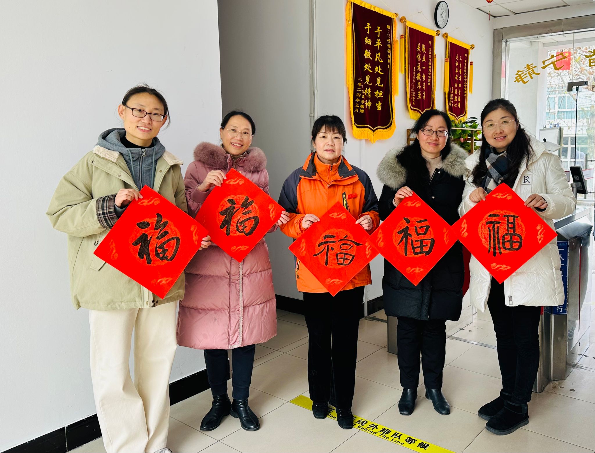活动中,老师们关心地询问同学们期末学习和生活情况,并建议同学们利用好寒假时间,通过社会实践提高自己的综合能力。随着活动的开展,党员教师们开始挥毫泼墨,一幅幅寓意吉祥、充满正能量的春联跃然纸上。龚月红老师转动笔锋,写出了字体灵动、苍劲有力的新春对联和“福”字,将心底的美好祝愿化作一张张寓意平安和谐、吉祥如意的书法作品,书写出对同学们的美好祝愿。同学们也踊跃参与,在老师们的指导下写出了有模有样的作品。“迎新春年年如意,接鸿福步步高登”“学海无涯勤者进,书山有路志者攀”,一幅幅对联表达了对新年的美好祝愿和对同学们的殷切期望。同学们挑选着自己心仪的春联,脸上洋溢着笑容。由于临近期末考试,同学们纷纷向老师们“求”起了“考的都会”“逢考必过”等字样,现场传来阵阵欢乐的笑声。