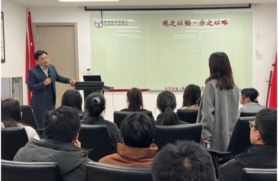 随后,周涛律师向师生们介绍了律所的招聘政策及人才培养计划,现场录用了部分学生参与寒假实习,并对同学们的简历进行了完善指导。