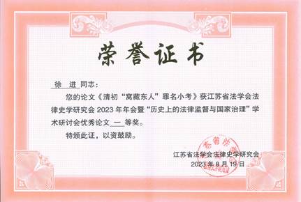 2023年8月19日,江苏省法学会法律史学研究会2023年学术年会暨“历史上的法律监督与国家治理”学术研讨会在南京市召开。本次会议由江苏省法学会法律史学研究会主办,南京审计大学草莓视频 (纪检监察学院)承办,来自南京大学、东南大学、南开大学、中国政法大学、南京师范大学等高校以及徐州市中级人民法院等实务单位的80余名学者与会。草莓视频 夏清瑕教授、法律系主任徐进博士以及硕士研究生赵志琪参加会议。