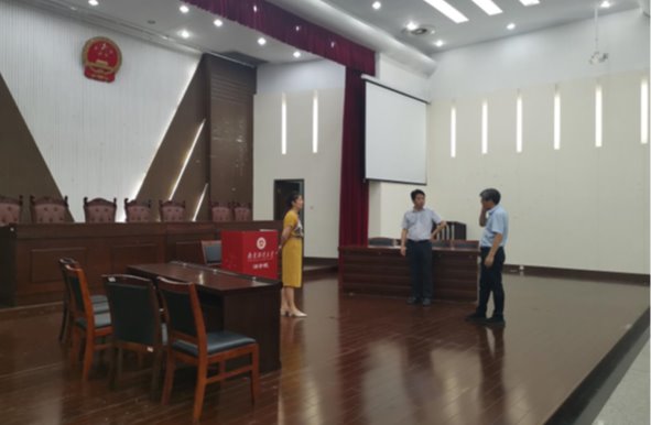 检查组首先来到模拟法庭,学院领导详细询问模拟法庭平时的使用情况,在得知这个实验室日常使用频率还比较高的情况下,再次强调学生在里面开展各种活动时务必注意安全。同时提议尽早更换模拟法庭的投影和音响等常用设备,以使各项活动更好开展。然后,检查组来到法律诊所,由于这里放置几十台电脑,所以更需要注意防火和防盗,假期暂时没有上课和对外开放,建议把电源总开关关掉。最后,检查组来到社会工作实验室,由于社工系的学生假期还会在这里自修和学习,要提醒学生注意用电安全,切记人离开后要断电并锁好门。