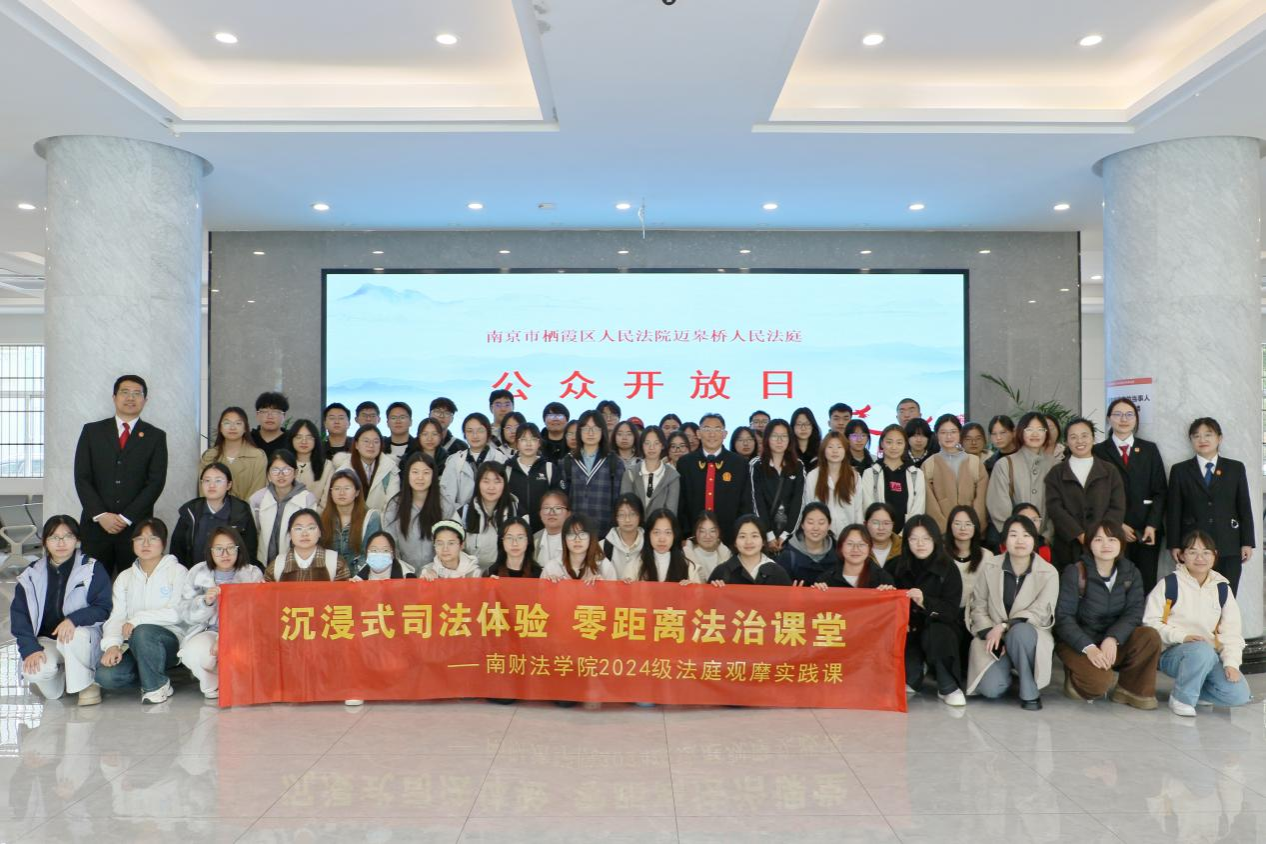4月23日下午,草莓视频 2024级66名“民事诉讼法”课程学生,在李蔚老师带领下,走进南京市栖霞区迈皋桥人民法庭,开展“参观+旁听+课堂”沉浸式实践教学活动。本次活动紧扣课程实践要求,打通法学理论与司法实务的衔接通道,助力学生提升实践能力。