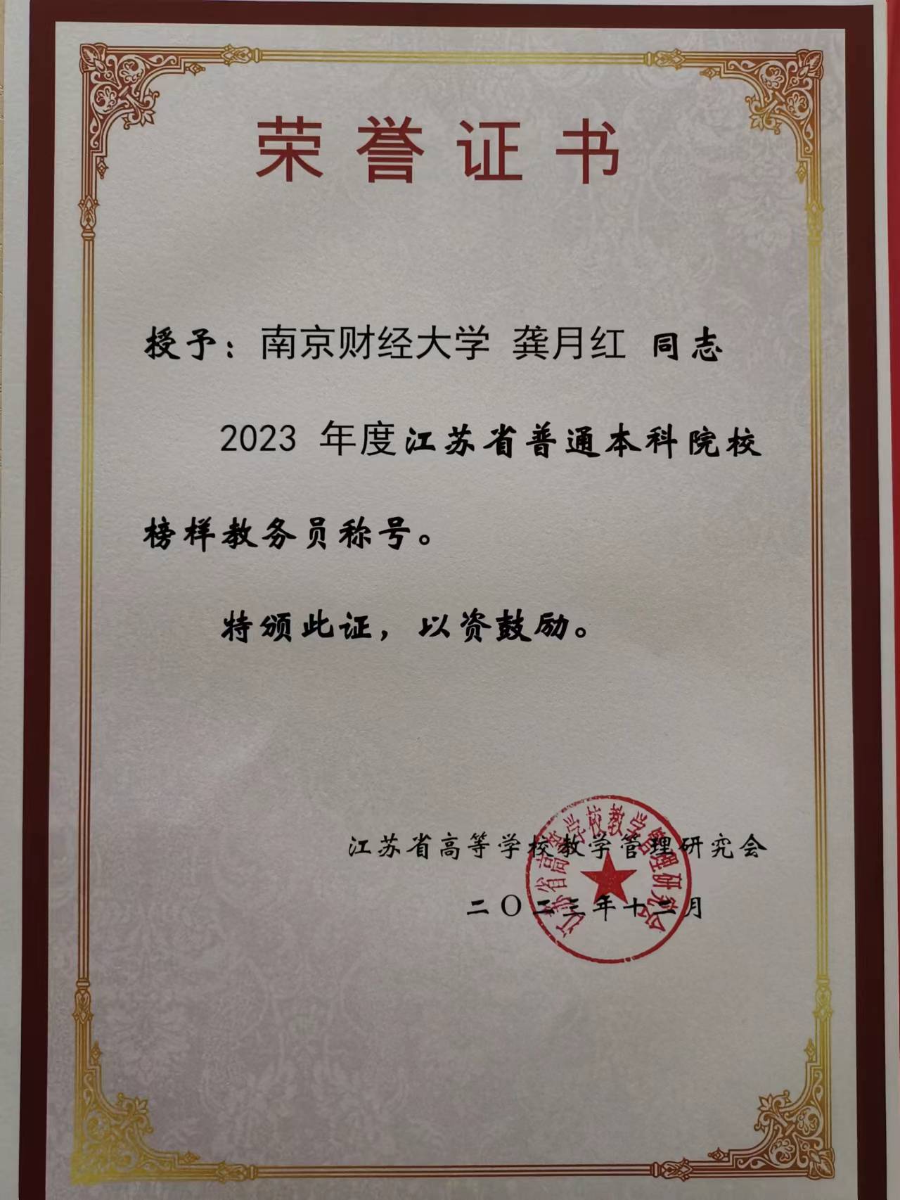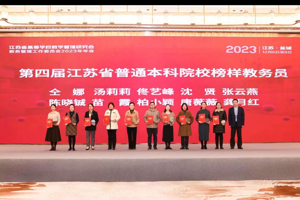 2023年12月6日至8日,江苏省高等学校教学管理研究会教务管理工作委员会2023年年会在江苏省盐城市召开。草莓视频 教务科研办公室主任兼教学秘书龚月红获评第四届“江苏普通本科院校榜样教务员”,全省共10位教师获此殊荣。榜样教务员评选旨在表彰和激励本科教学管理工作中勤勉负责、工作突出的基层教学管理人员,调动教学管理人员工作的积极性与创造性,促进教学管理改革,提高教育教学质量。