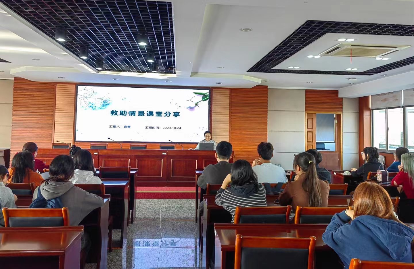 第一站,来到南京市救助管理站,在社工科何春兰老师的安排下,袁青老师为同学们讲授了一场生动的救助情景课,从收容遣送到救助管理、救助管理的基本概念、救助管理站的工作内容、救助工作案例分享、救助管理工作与社会工作的契合五个方面向同学们全方位讲述了救助管理。同学们了解到了救助管理就是秉持着“自愿受助,无偿救助”的精神,进行临时性社会救助工作,通过社会救助,达到扶贫济困、维护社会稳定、保障人民安居乐业生活的目的。面对自愿接受救助的困难人群,救助站首先会进行站内照料,如果是不愿进入救助站的困难群众,工作人员就会为其提供必需的生活物品和食物,进行及时的街面救助,确保帮助到每一个困难群众。还有很多失能、失智的走失人群,救助站也会对应地开展寻亲救助,照亮流浪乞讨人群的回家路。通过分析预估流浪乞讨者现实身体情况,对其进行基本的生活照料和看护,通过传统寻亲模式、智慧公安寻亲模式、互联网科技寻亲、志愿者合作寻亲“四位一体”相结合,有效帮助多位走失人员回家。袁青老师既讲授了当前的救助政策和内涵,还通过救助实例帮助同学们理解救助站的工作职能,最后分享了社工理念和方法运用于救助领域。
