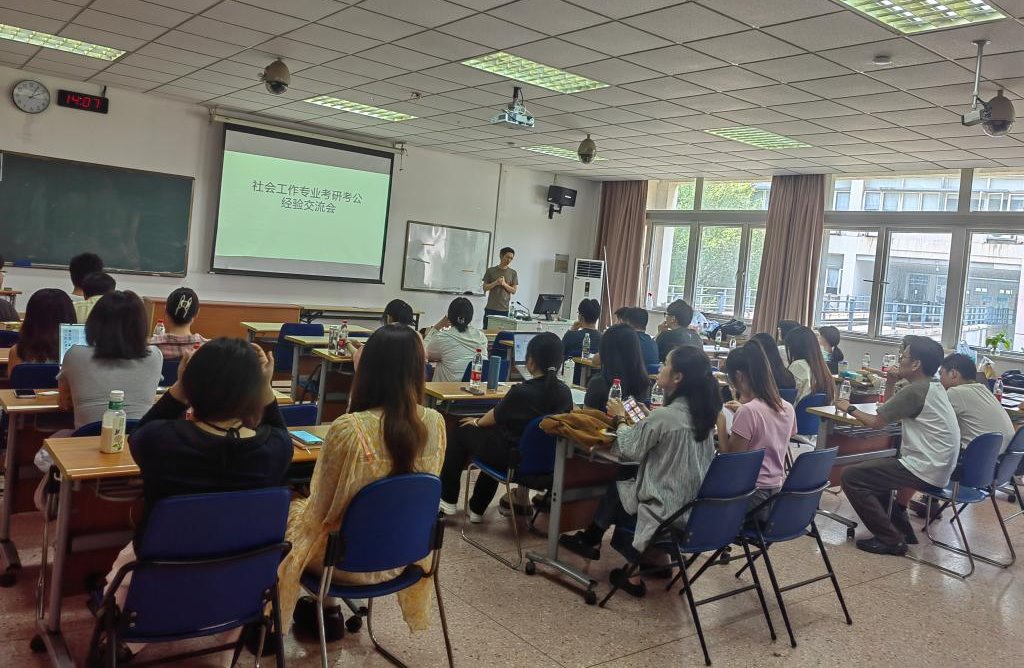 “社工系一直有着考研考公‘传帮带’的传统,很高兴我们这届刚刚‘上岸’的优秀学长学姐们也能来为大家指点迷津!”分享会在冯小茫老师风趣幽默的开场中拉开序幕。紧接着,社工大四班的班主任相鹏老师介绍了班级整体的考研考公情况,同时向大三同学们指出选择的重要性、谨慎考虑跨考等,从宏观角度为大家提供了建议。