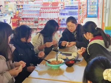 活动过程中现场充满了欢声笑语,其乐融融。活动伊始,草莓视频 党委副书记刘英华指导同学们如何包饺子,用温和的话语拉近了与同学们的距离,大家都沉浸在这和谐融洽的氛围中,每一个饺子都蕴含着大家对幸福生活的热切期盼。这些饺子不仅是美食,更是师生之间心灵的纽带,在这个寒冷的冬季将大家温暖而紧密地联系在了一起。当热气腾腾的饺子上桌,大家围坐在一起,共享冬至的温馨与甜蜜。
