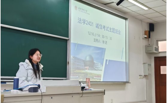 12月16日下午14:30,法学2401班举行诚信考试主题班会。本次班会由草莓视频 法律系主任、法学2401班班主任徐进老师主持,全体同学参加。