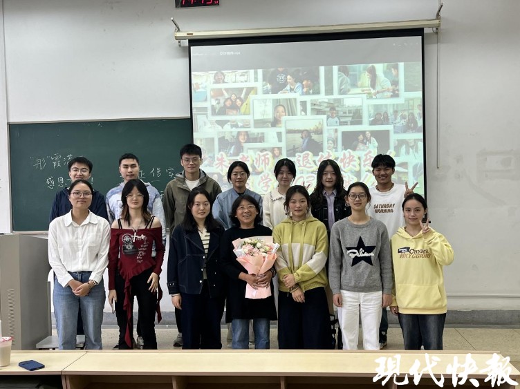 同学们自发录制了送给朱彤老师的祝福,向老师真情“告白”。班长刘项向朱彤献上鲜花、由同学们的祝福便签制作而成的画框。大家纷纷上前与老师留下了珍贵的光影记忆。
