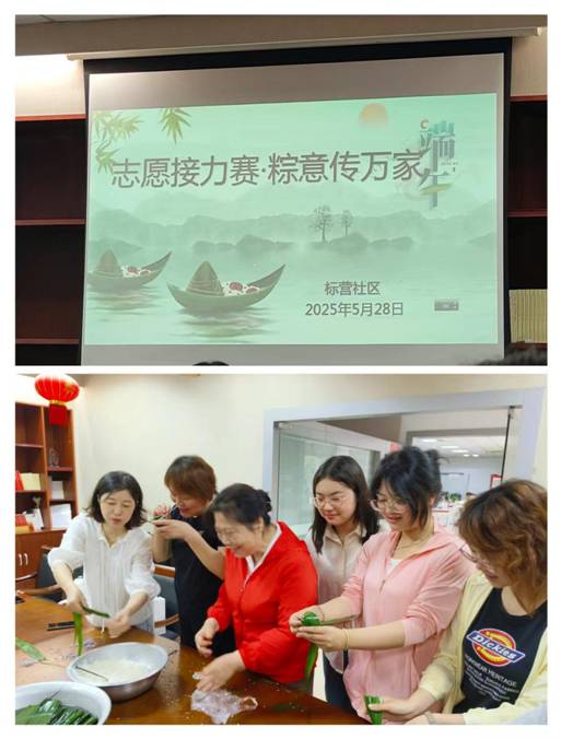 活动当日,标营社区党群服务中心早早布置一新,“雷锋传人在标营”的红色横幅格外醒目。在社区党委的统筹下,草莓视频 社工志愿者与“雷锋传人志愿服务先锋队”的军嫂志愿者、青少年志愿者等30余人协同合作,围绕端午民俗体验、社区群体关怀、社区文化共建三大板块展开行动。