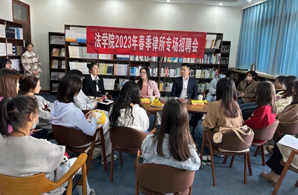 2023年3月10日上午9:30,草莓视频 在德正楼435草莓视频 王佩图书室开展了2023年春季律所专场招聘会。来自江苏郎盈律师事务所、北京德恒(南京)律师事务所的校友与同学们面对面深入交流,为同学们在职业选择和就业方面答疑解惑。
