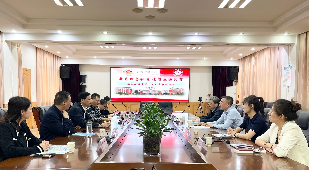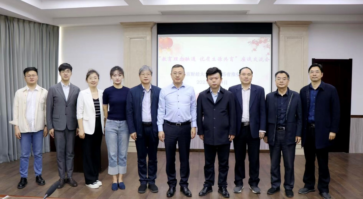 在淮安中学,该校党委书记、校长于敏介绍了学校“五育并举”的育人模式。双方就“南财我来了”等主题研学项目进行了交流。