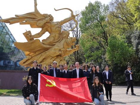 随后,两支部党员共同参观了南京抗日航空烈士纪念馆。在讲解员的引导下,党员们通过历史文物、影像资料和英雄事迹展陈,重温抗战时期航空英烈舍生忘死、保家卫国的壮烈历程。纪念馆内,一封封泛黄的家书、一件件斑驳的飞行装备,无声诉说着先烈们“捐躯赴国难,视死忽如归”的赤子情怀。在庄严肃穆的烈士纪念碑前,全体党员整齐列队,敬献花篮、鞠躬默哀。黄建国书记带领同志们集体宣誓,重温入党誓词。