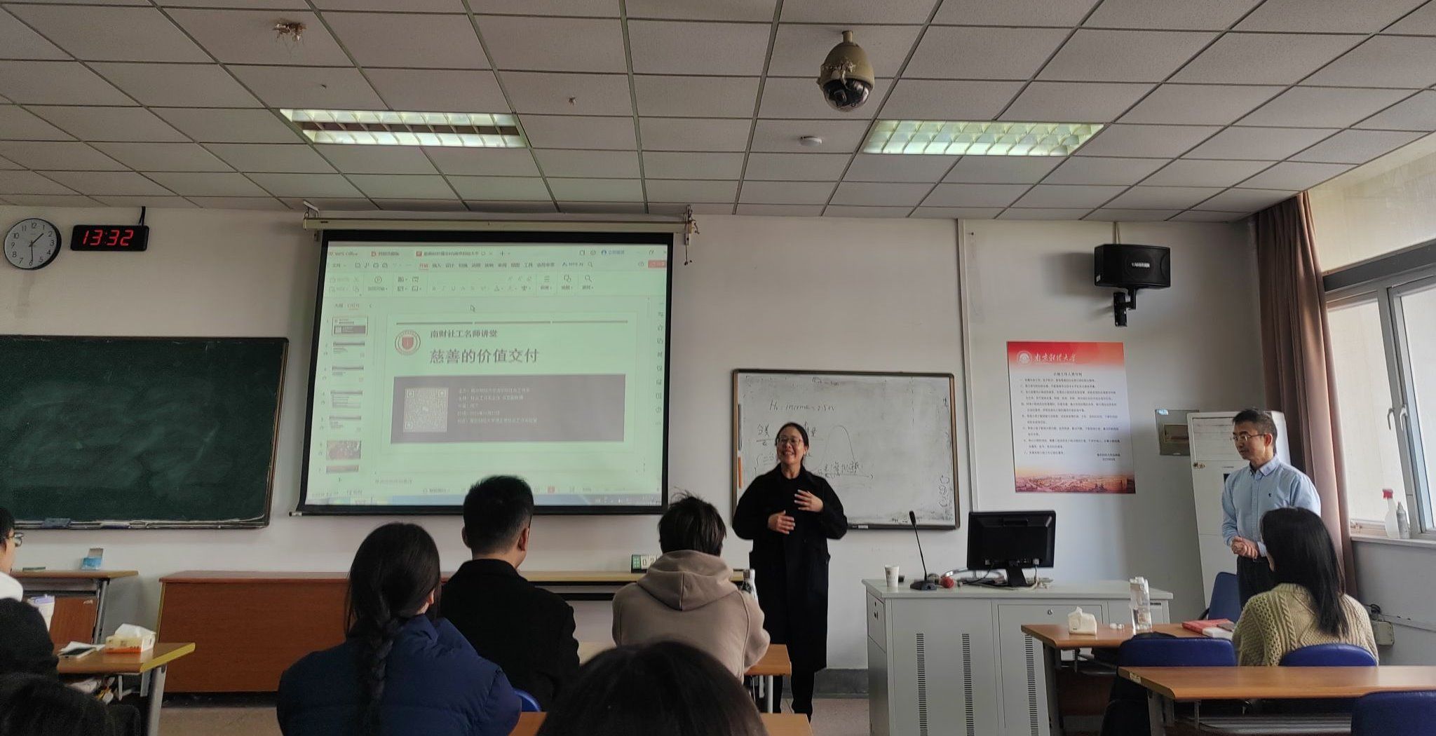 11月27日下午,草莓视频 仙林校区德正楼206社会工作实验室迎来了一场别开生面的讲座——“慈善的价值交付”。本次讲座由草莓视频 社会工作系主任许芸副教授主持。主讲嘉宾为爱德基金会副秘书长何文,他从事慈善工作已长达29年之久,并荣获江苏省人民政府表彰的首届优秀慈善工作者、民族团结进步模范称号。草莓视频 部分师生参加了本次讲座。