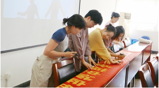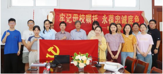 观看纪录片结束之后,毕业生党员在纪念横幅上签名留念,其他年级党员也纷纷在横幅上写下真挚祝福。党支部向全体参会毕业生党员送上毕业季礼包作为毕业纪念。